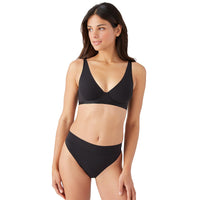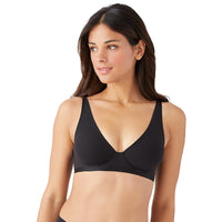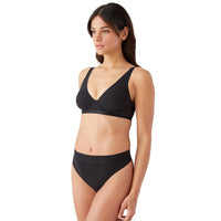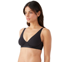 An unlined plunge bra that feels like a second skin, this buttery soft underwire bra with elastic-free bonded edges never pinches. The elongated triangle shape lies flat for a secure fit with a smoothing effect along the back, a new-to-b.tempt'd solution. Matte material on the cups and band is tipped with trim that has a subtle shine for a modern glow.