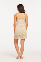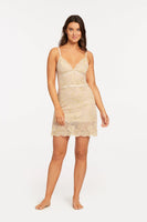 The alluring Champagne lace chemise set by Fleur’t comes with a matching thong style panty, both have stunning flower shaped lace details. The straps on the chemise are fully adjustable and the cups have a mesh design to lift and support you.