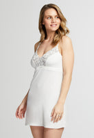 This chemise from Montelle’s Forever More Bridal collection features bust support, luxe lace at the bust, adjustable straps, and a matching thong. The flattering silhouette will make you feel amazing, as any bride to be should.