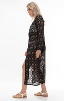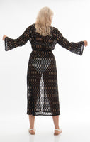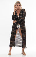 The Pia Rossini Fiesta kimono is a unique and stunning addition to your swimwear or summer outfits. Black lace adorned with golden thread gives this kimono a little something special.