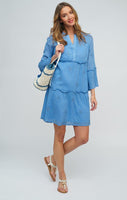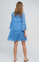 Made with crinkle cotton this cover up tiered style dress from Pia Rossini has floral applique details, with bell shaped sleeves. Wear this by itself, over your swimsuit or pair with jeans and sandals for a cute everyday look.