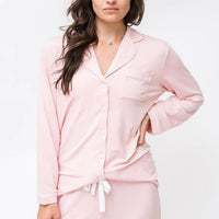 The Korrah Sleep Shirt is luxury at its finest. With a buttoned top and contrast piping, this is the perfect pajama to wear at a Bachelorette sleepover, on a relaxing morning at home, or enjoying some beauty sleep.