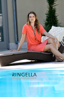 This Ringella dress takes you from the beach to lunch and beyond. This style is made of absorbent, pleasantly light, stretch terry fabric. We love how the leopard print zippered neckline creates such a visual highlight. It also has side pockets! This dress makes an amazing bathing suit cover or casual dress.