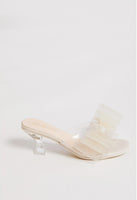 Created with romance and fantasy in mind, The Bow Heel Slipper completes any look. Its structured bow playfully lays on the foot, while its clear base and heel make the illusion of gliding on air.