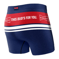 Saxx and Budweiser have collaborated to create the Ultra boxer brief for the Bud lover. The Ultra boxer brief features soft, moisture wicking fabric, a relaxed fit, and a fly. They also contain the patented BallPark Pouch™️