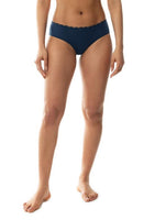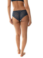 Hipster panties that have a lacy back panel and shimmering gold thread detailing.